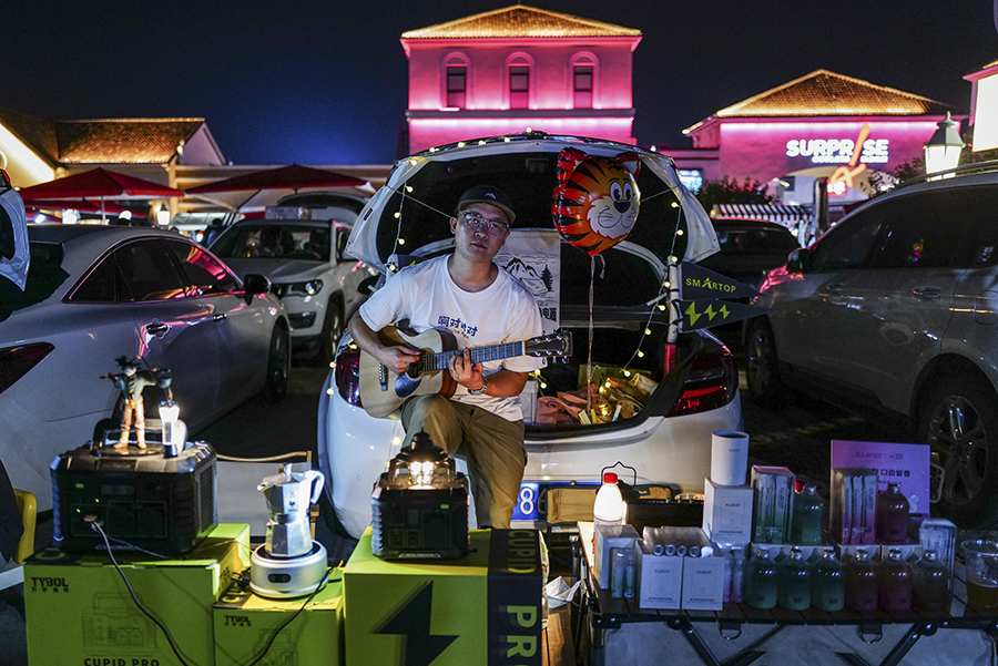 开车摆摊的年轻人
