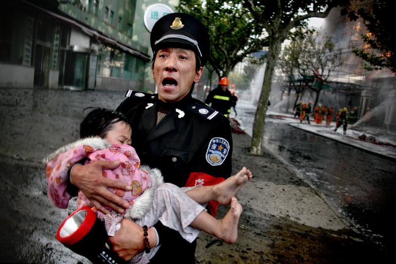 上海高层公寓大火救援现场